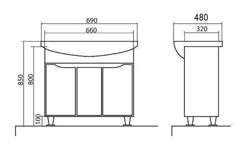Тумба напольная Аквародос Родорс 70 см с раковиной Руна ДСП/МДФ белый