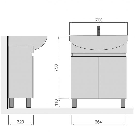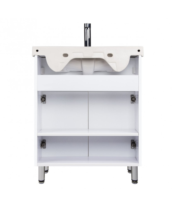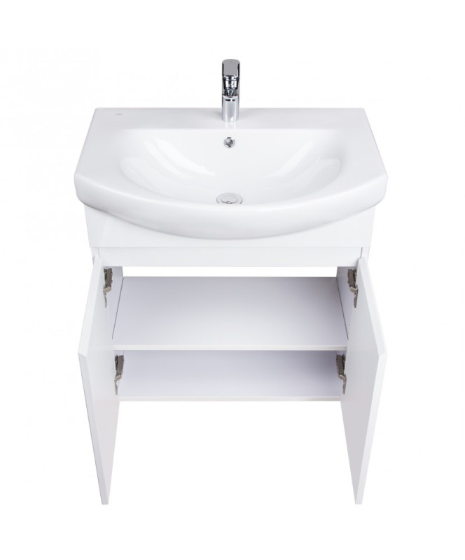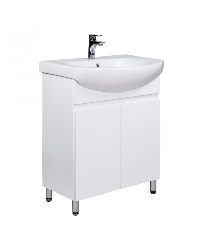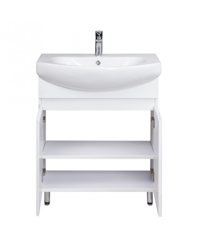 Тумба напольная Мойдодыр Фокус 70 см с раковиной Runa/Лотос ДСП/МДФ белый глянец 00-00001862