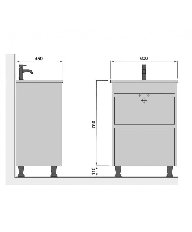 Тумба напольная Мойдодыр Prime 60 с раковиной Vivace ДСП/МДФ белый глянец 00-0008655