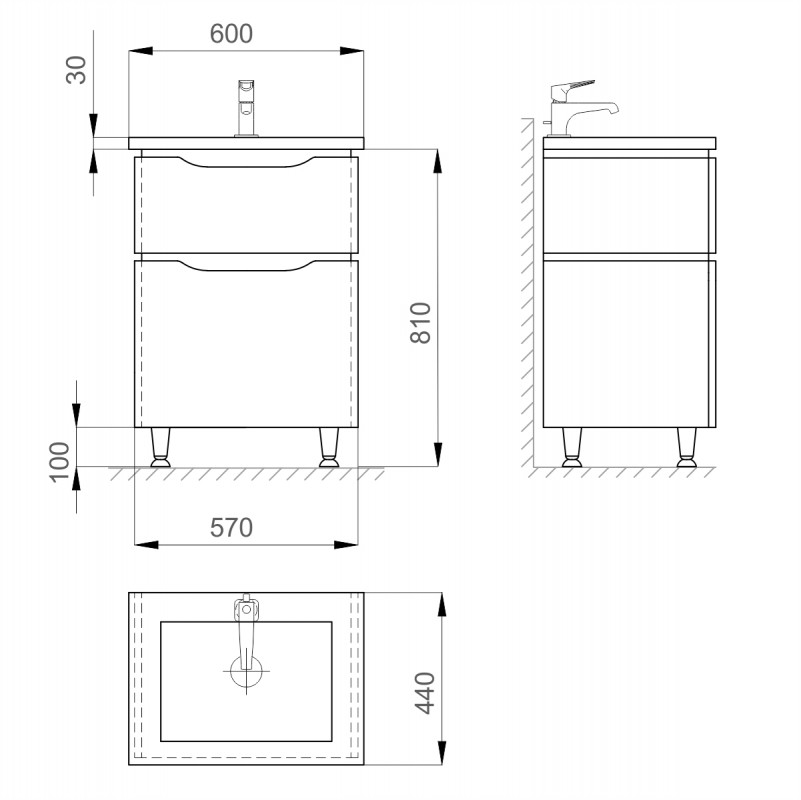 1) Тумба напольная Sanwerk Alessa 60х44 см с раковиной Канте белый/венге