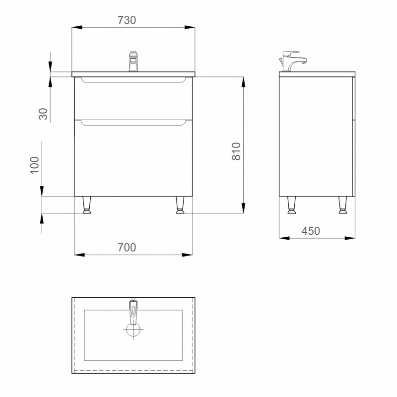 1) Тумба напольная Sanwerk Era 70х45 см с раковиной Канте белый