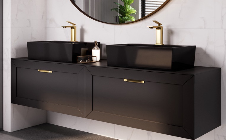 Тумба под раковину Besco Dexa 60х50 см МДФ черный/золотая ручка