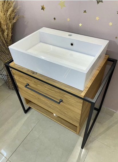 Тумба под раковину Fancy Marble Loft 75,5х50 см без раковины шпон/металл дуб