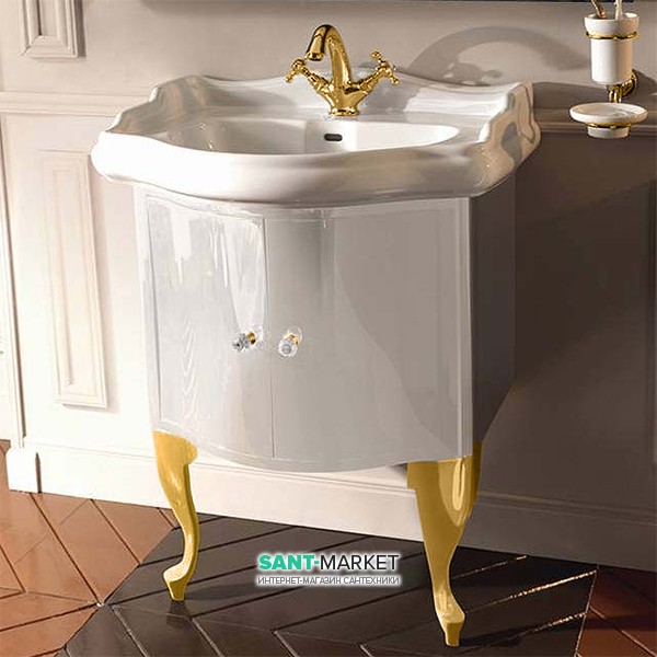 Тумба под раковину Kerasan Retro 69 см белый глянцевый ручки кристалл золото