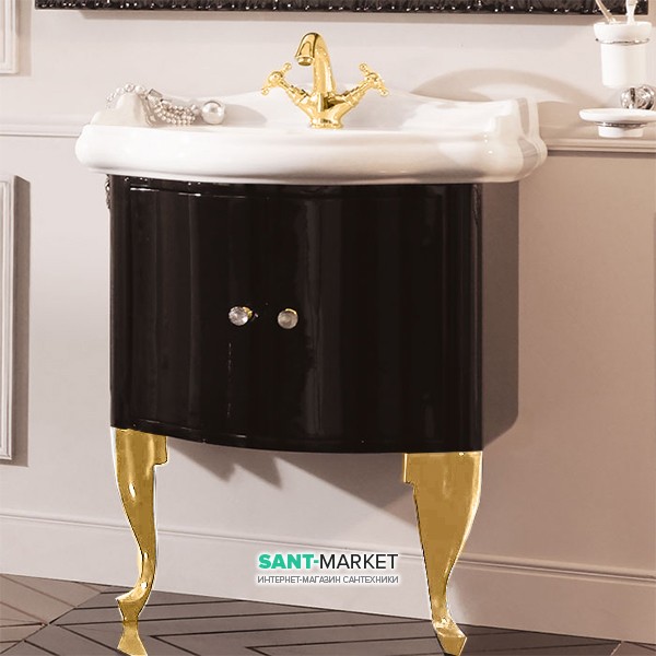 - Мебель закрытая лакированная под раковину 69 см в комплекте с чёрными ножками и ручкой с кристаллом