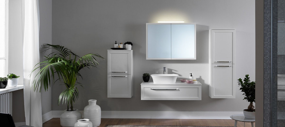 Мебель для ванной Blanche. Выбирайте зеркало, соответствующее Вашим потребностям и эстетическому стилю. Включение лампы и регулирование яркости света зеркала OG O80, 100, 120. Зеркало можно заказать в сочетании с подобранной мебелью или отдельно. Мягкое закрывание ящика для максимального удобства. Мебель Blanche доступна в белом и антрацитовом цветах.