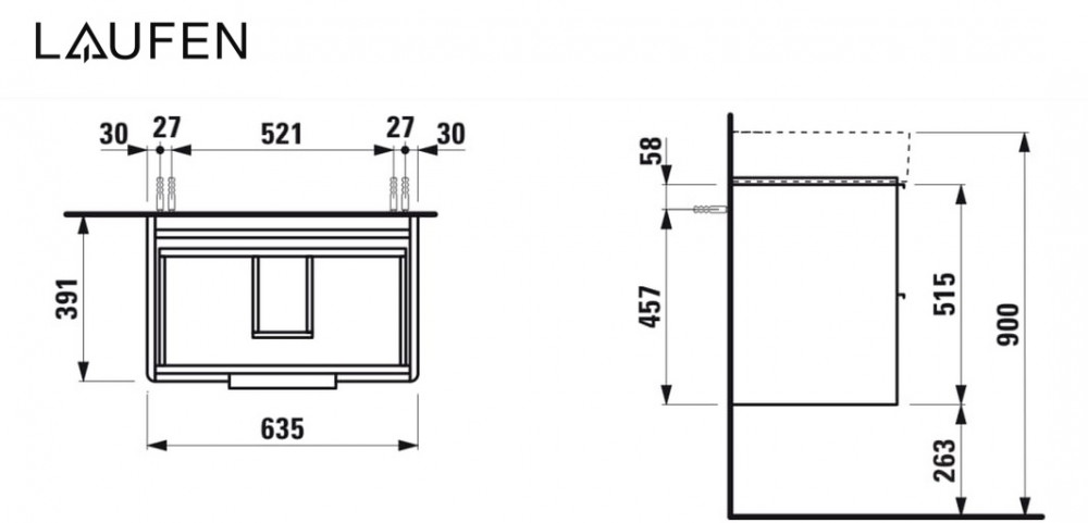 Тумба под раковину Laufen Base 63,5х39,1 см МДФ цвет на выбор H4023121109991