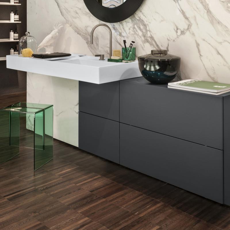От итальянской компании Kartell коллекции достался прочный и качественный пластик, а от швейцарского производителя Laufen – революционный материал SaphirKeramik, который позволяет изготавливать сантехнику с невероятно тонкими стенками (1-2мм) и высокой устойчивостью к повреждениям. Это интересное сочетание трансформировалось в современные, изящные и при этом невероятно прочные сантехнические изделия, которые не только достойно смотрятся даже в самых дорогих интерьерах, но и служат десятилетиями.