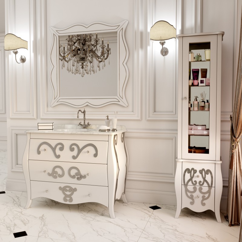 1) Тумба под раковину Marsan Arlette 1200 МДФ белый/серебро