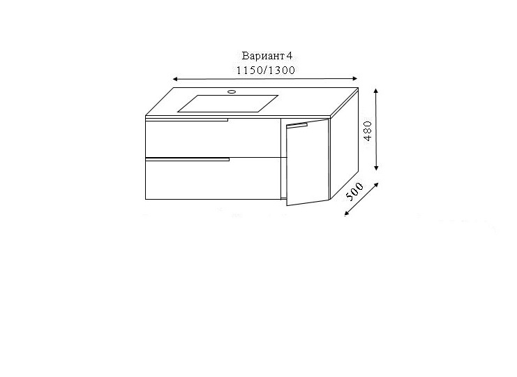 - Возможно укомплектовать раковиной из стекла или акрилового камня, а также столешницей из акрилового камня с раковиной (за дополнительную стоимость)