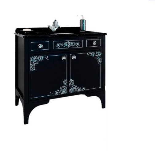 1) Тумба под раковину Marsan Jacqueline 900 дерево/МДФ черный/серебро