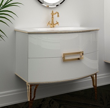 1) Тумба под раковину Marsan Sabrine 900 МДФ белый/золото