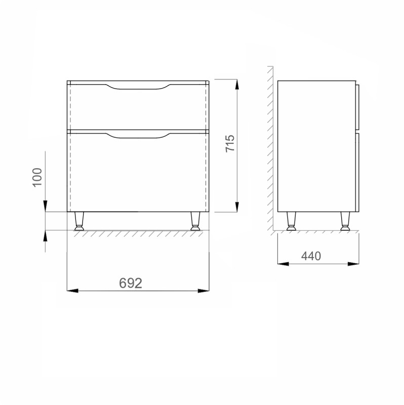 Тумба под раковину напольная Sanwerk Liga 69,2х44 см МДФ белый/дерево мессина TV0000208
