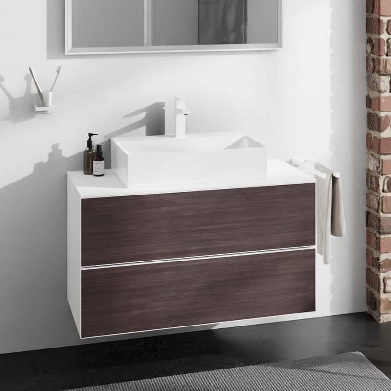 Тумба под раковину подвесная Hansgrohe Xevolos E 98х55,5 см матовый белый/темный дуб
