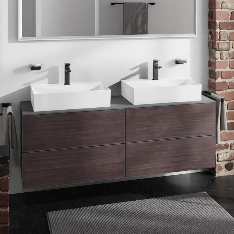 Тумба под раковину подвесная Hansgrohe Xevolos E 137х55,5 см сланцево-серый матовый/темный дуб