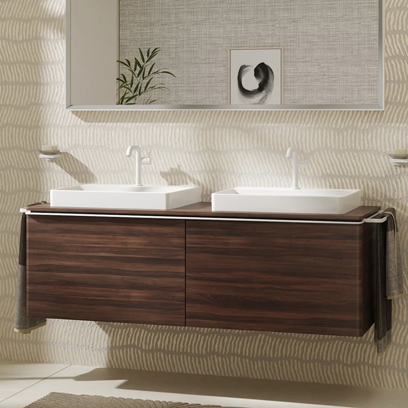 Тумба под раковину подвесная Hansgrohe Xelu Q 156х55 см МДФ темный орех ручка матовый белый