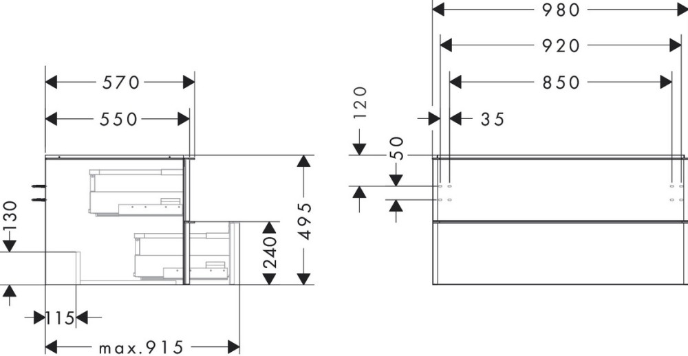 2 выдвижных ящика