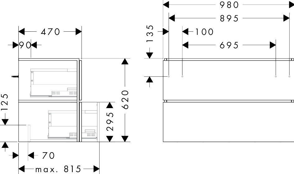 Тумба под раковину подвесная Hansgrohe Xilesa E 98х47 см МДФ сланцево-серый матовый