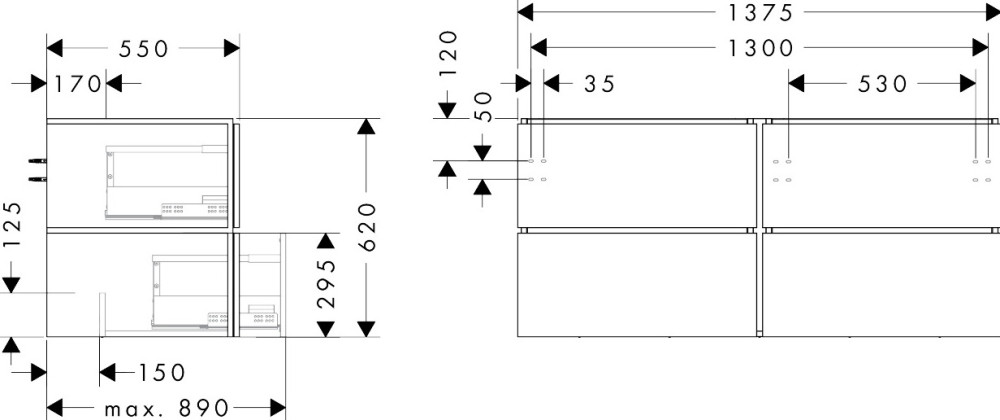 Тумба под раковину подвесная Hansgrohe Xilesa E 137,5х55 см ДСП дуб кашемир 54306550