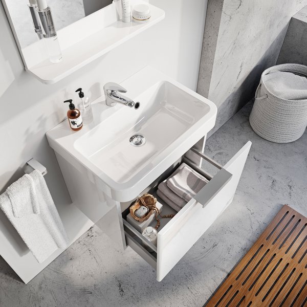 Комплексный набор продуманных изделий, предназначенных не только для маленьких ванных комнат. В дополнение к специальной ванне и умывальнику над ванной, концепция BeHappy также предлагает классический умывальник с тумбой для хранения предметов первой необходимости. Ванная комната BeHappy вместит все необходимое и в маленькой ванной комнате, но также будет хорошо смотреться и на большей площади.