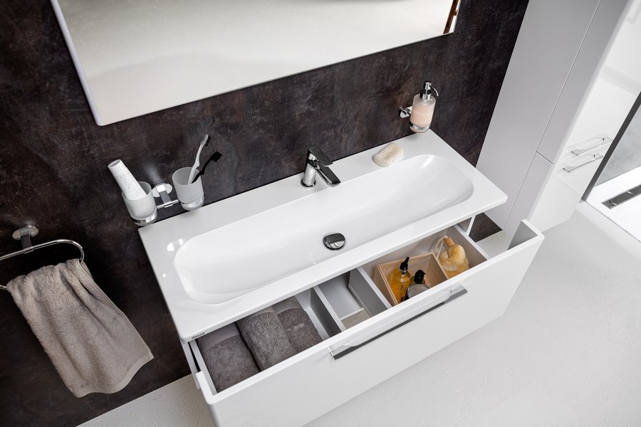 Стиль шкафчиков для ванных комнат идеально соответствует стилю одноименных умывальников, с которыми он образует универсальное одно целое, независимое от дизайна какой-либо ванной комнаты.