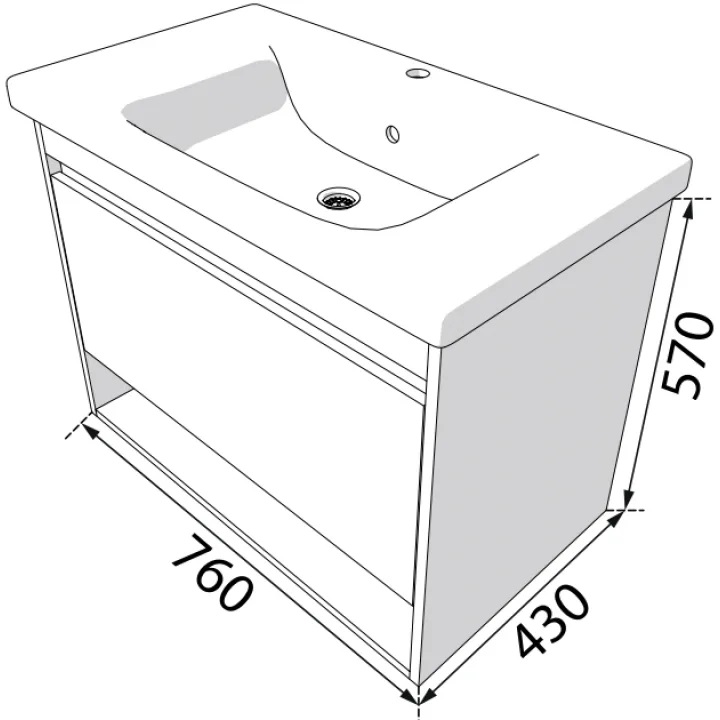 1) Тумба под раковину Radaway Silvia 76 подвесная ДСП/МДФ белый/дуб ватан матовый