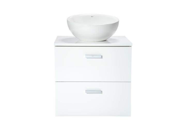 1) Тумба под раковину со столешницей Roca Victoria 59х45.5 см с двумя ящиками МДФ белый глянец