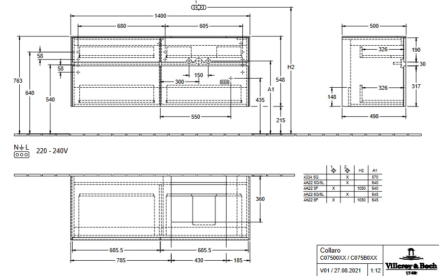 Тумба под раковину Villeroy & Boch Collaro 140х50 см с подсветкой ДСП белое дерево C075B0E8