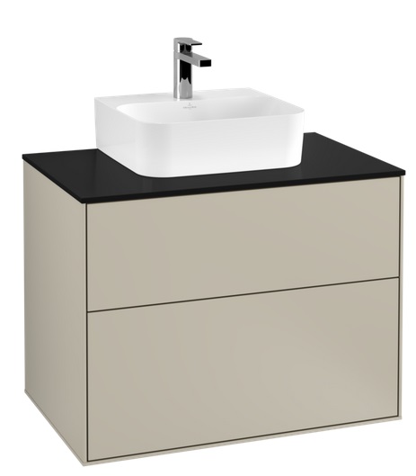 Тумба под раковину Villeroy & Boch Finion 80х50,1 см МДФ песок матовый лак/стекло черное матовое F08200HH