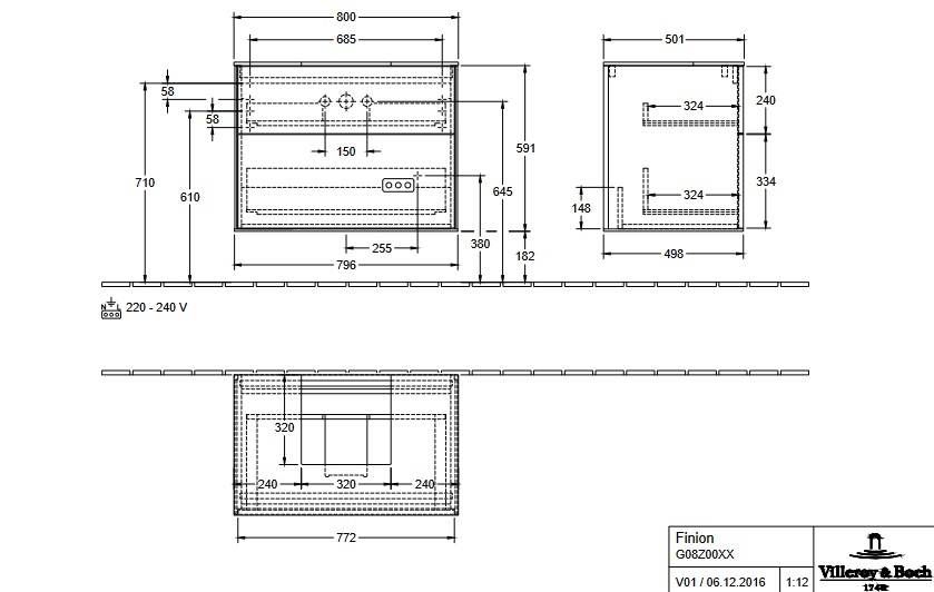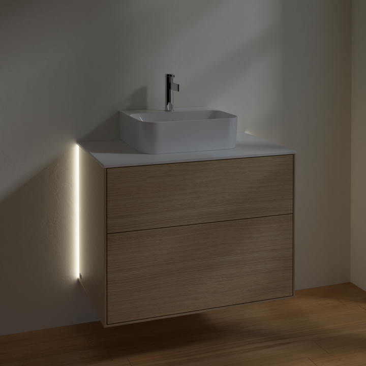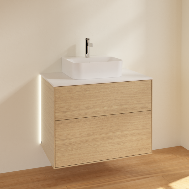 Тумба под раковину Villeroy & Boch Finion 80х50,1 см с подсветкой ДСП шпон дуба/стекло белое матовое G08100PC