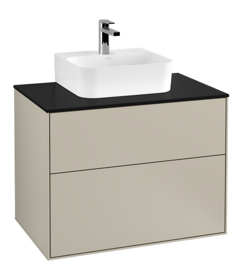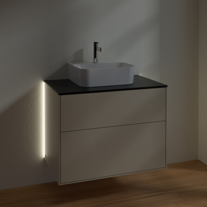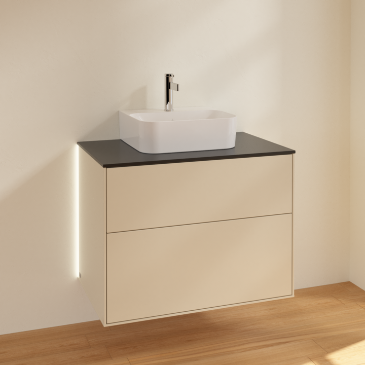 Тумба под раковину Villeroy & Boch Finion 80х50,1 см с подсветкой МДФ песок матовый лак/стекло черное матовое G08200HH