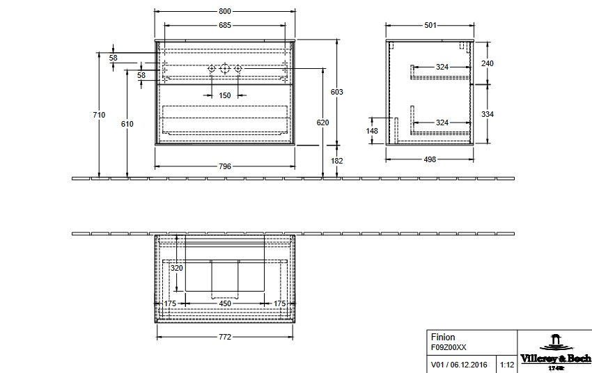 Тумба под раковину Villeroy & Boch Finion 80х50,1 см МДФ глянцевый черный лак/стекло черное матовое F09200PH
