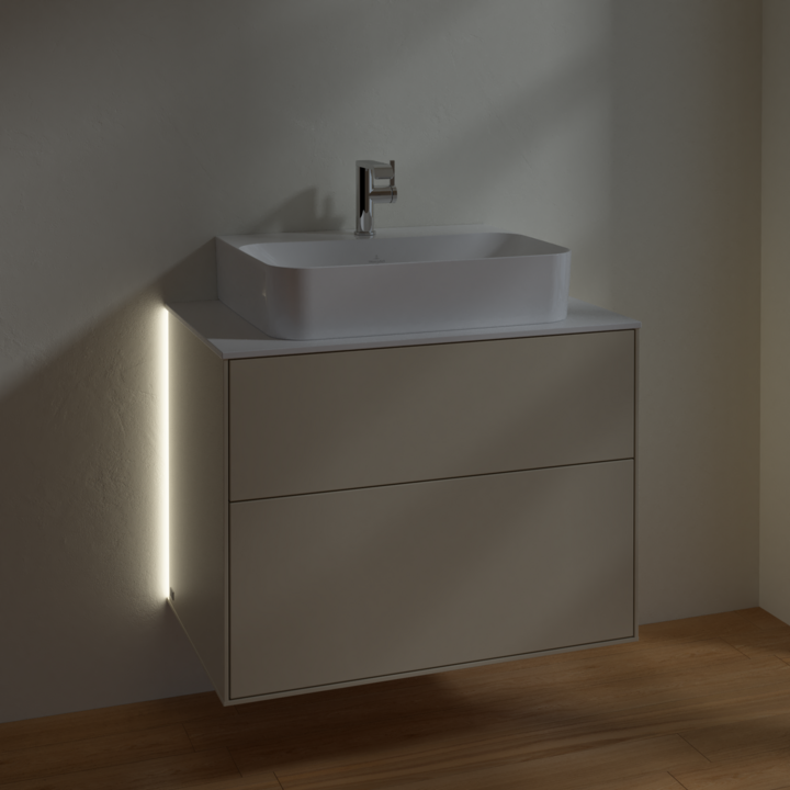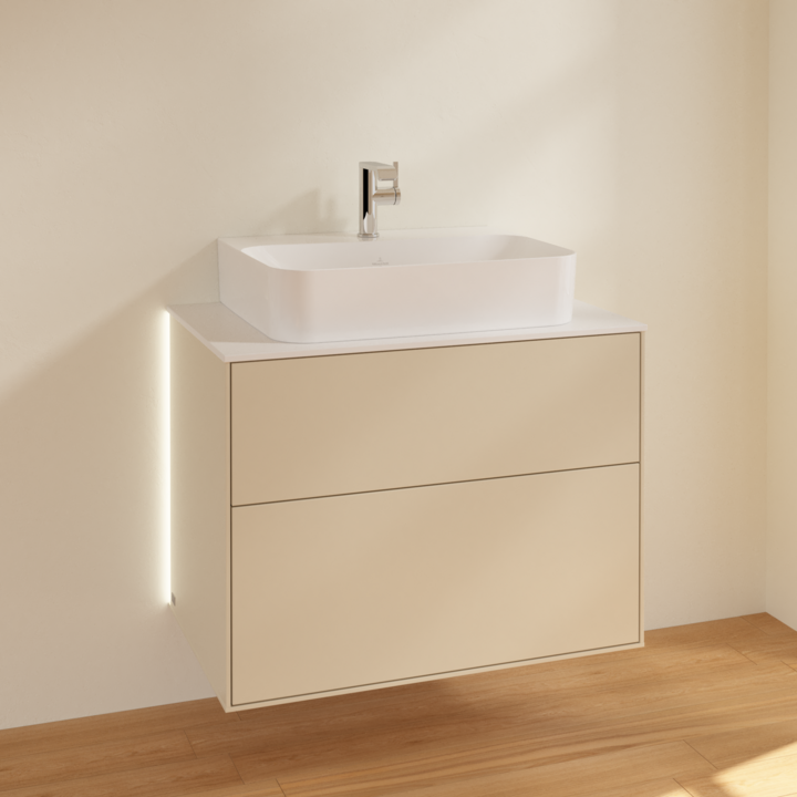 Тумба под раковину Villeroy & Boch Finion 80х50,1 см с подсветкой МДФ песок матовый лак/стекло черное матовое G09100HH