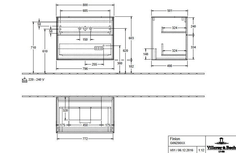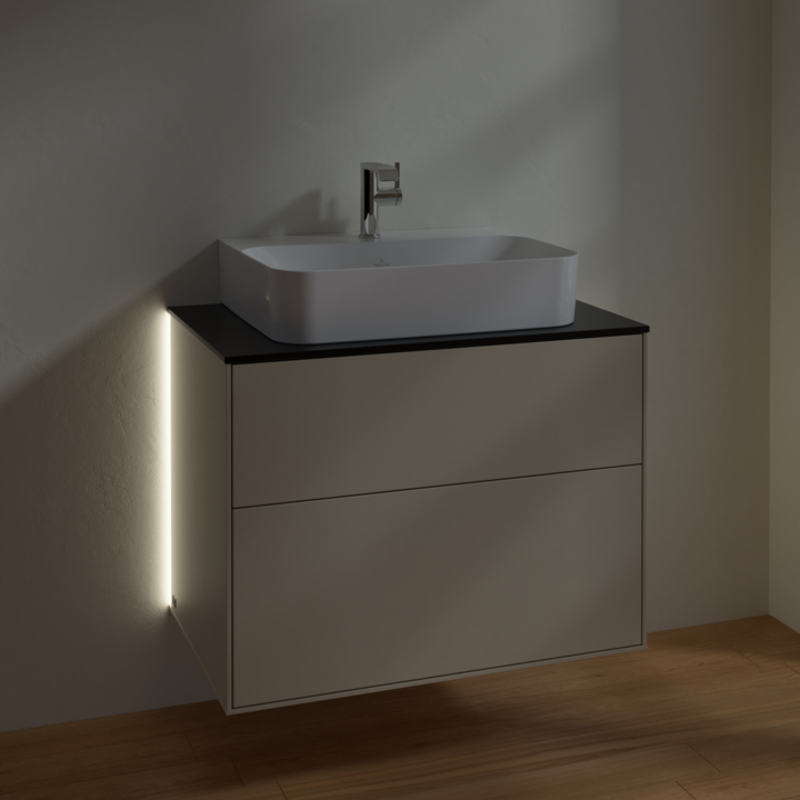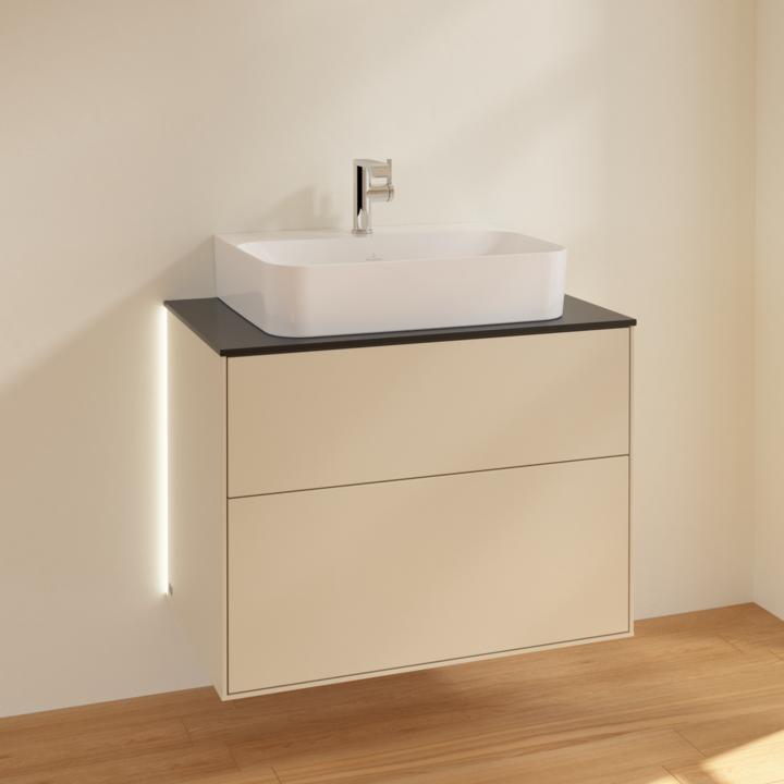 Тумба под раковину Villeroy & Boch Finion 80х50,1 см с подсветкой МДФ песок матовый лак/стекло черное матовое G09200HH