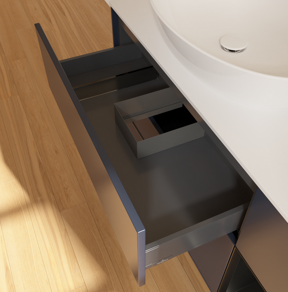 Продуманное внутреннее разделение мебели для ванной Villeroy & Boch позволяет создать индивидуальную систему организации пространства в ванной комнате. Элементы, расположение которых можно менять, например регулируемые стеклянные перегородки и контейнеры для аксессуаров различных размеров, обеспечивают хороший обзор и порядок. Благодаря практичной системе внутреннего разделения вы будете быстро находить принадлежности для ванной, которыми вы постоянно пользуетесь.