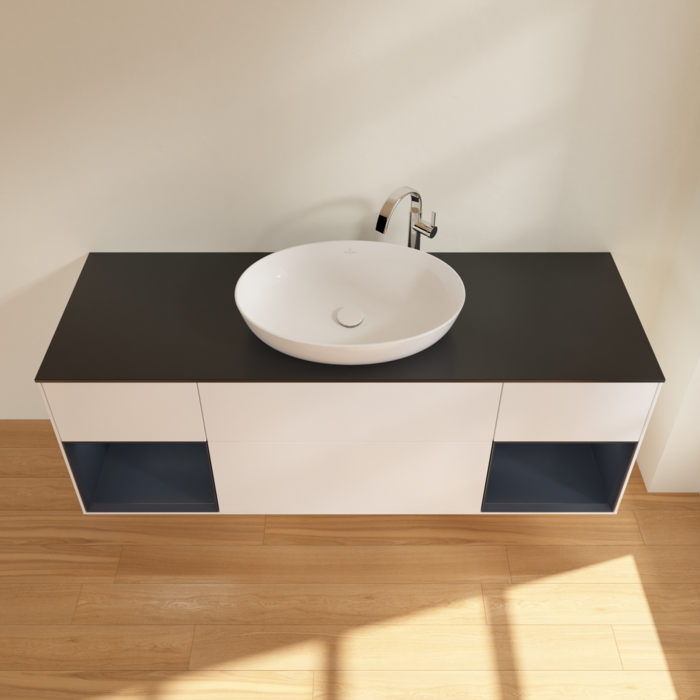 Тумба под раковину Villeroy & Boch Finion 160х50,1 см с подсветкой МДФ белый матовый лак/стекло черное матовое
