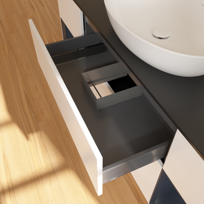Продуманное внутреннее разделение мебели для ванной Villeroy & Boch позволяет создать индивидуальную систему организации пространства в ванной комнате. Элементы, расположение которых можно менять, например регулируемые стеклянные перегородки и контейнеры для аксессуаров различных размеров, обеспечивают хороший обзор и порядок. Благодаря практичной системе внутреннего разделения вы будете быстро находить принадлежности для ванной, которыми вы постоянно пользуетесь.