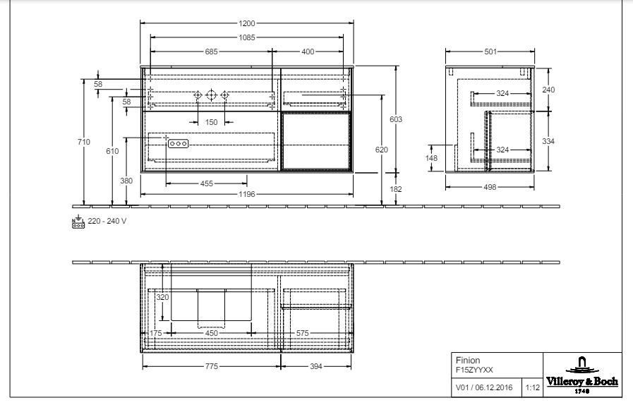Тумба под раковину Villeroy & Boch Finion 120х50,1 см с подсветкой МДФ антрацит матовый лак/стекло белое матовое
