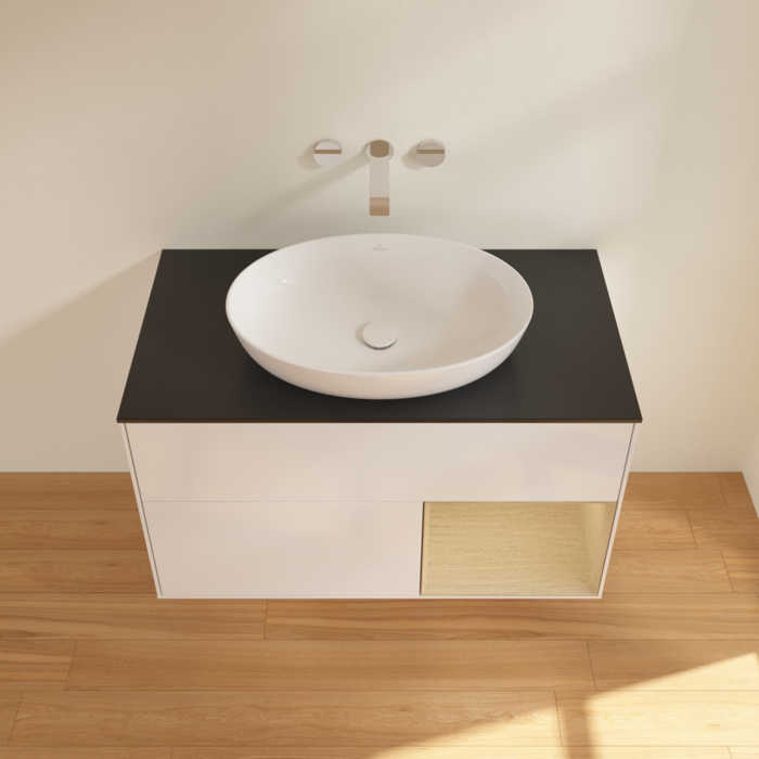 Тумба под раковину Villeroy & Boch Finion 100х50,1 см с подсветкой МДФ белый матовый лак/стекло черное матовое