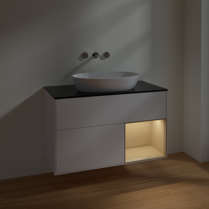 Тумба под раковину Villeroy & Boch Finion 100х50,1 см с подсветкой МДФ белый матовый лак/стекло черное матовое FA22PCMT