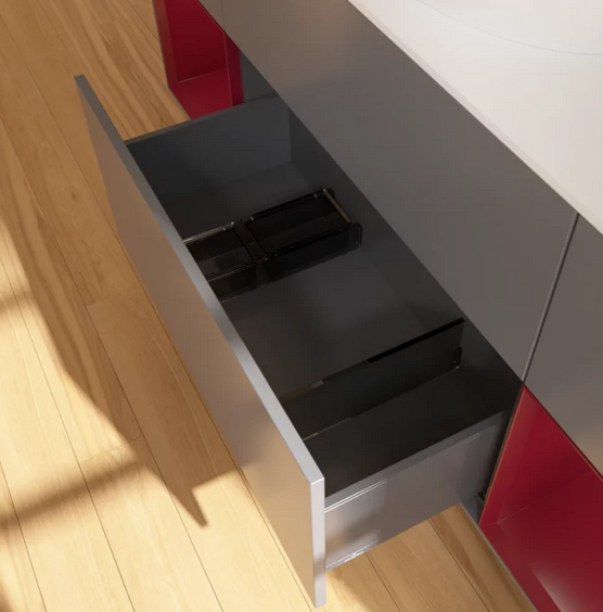 Полное выдвижение. Благодаря функции полного выдвижения выдвижные ящики можно полностью выдвигать. Все их содержимое хорошо видно и его удобно доставать. Больше не нужно копаться в дальних отсеках выдвижного ящика — благодаря мебели для ванной с полным выдвижением вы получаете полный обзор.