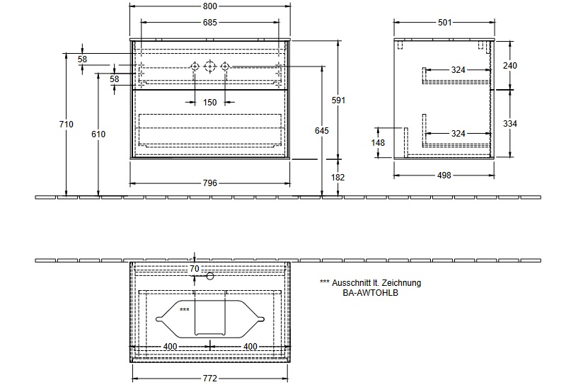 ящики с функцией SoftClosing, с функцией Push-to-open, с отверстием под смеситель