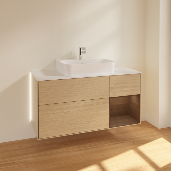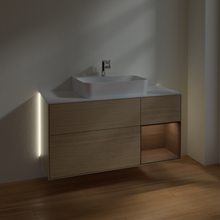 Тумба под раковину Villeroy & Boch Finion 120х50,1 см с подсветкой МДФ шпон дуба/стекло белое матовое