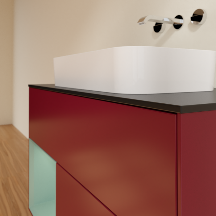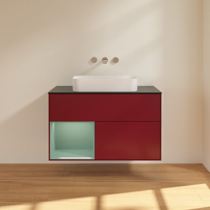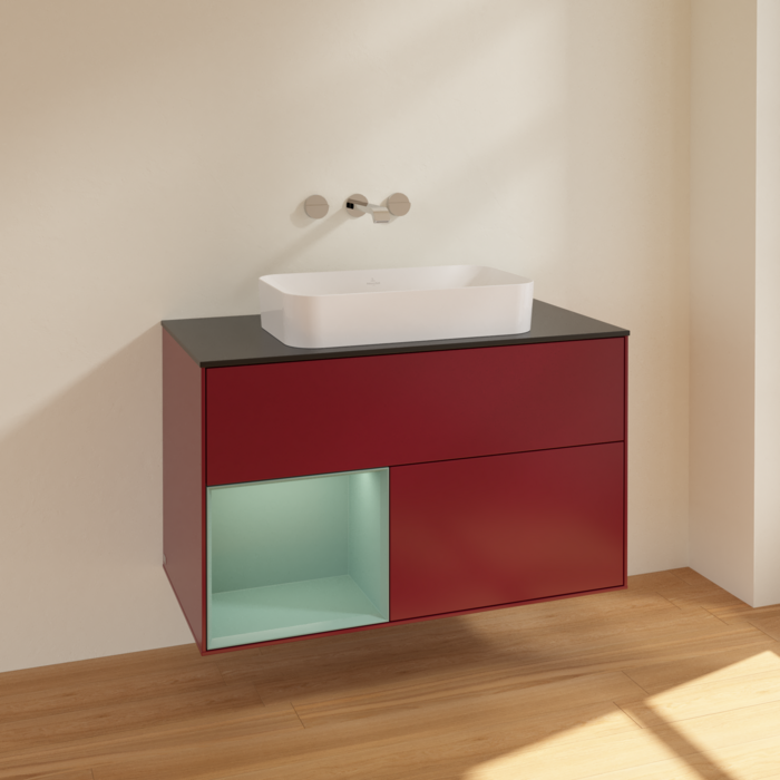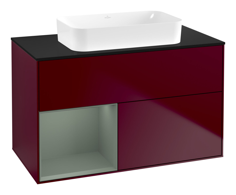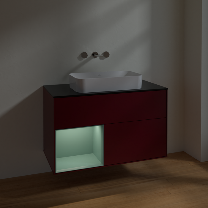 Тумба под раковину Villeroy & Boch Finion 100х50,1 см с подсветкой МДФ пион матовый лак/стекло черное матовое