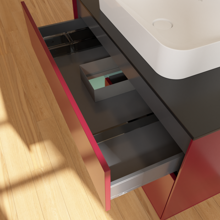 Практичные внутренние перегородки. Продуманные внутренние перегородки в мебели для ванной комнаты Villeroy & Boch позволяют индивидуально поддерживать порядок в ванной комнате. Различные элементы, такие как регулируемые стеклянные перегородки и ящики для аксессуаров различных размеров, обеспечивают порядок и хороший обзор. Благодаря практичным внутренним перегородкам вы сможете с первого взгляда найти часто используемые аксессуары для ванной комнаты.