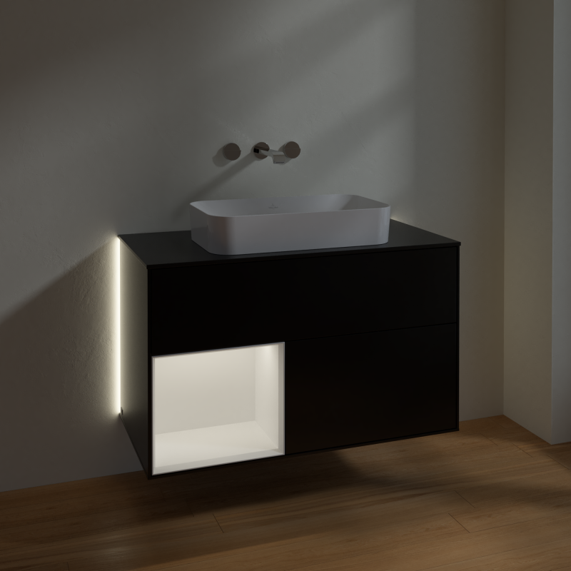 Тумба под раковину Villeroy & Boch Finion 100х50,1 см с подсветкой МДФ черный матовый лак/стекло черное матовое