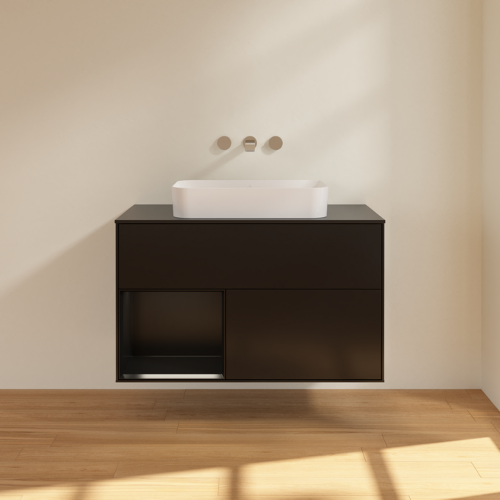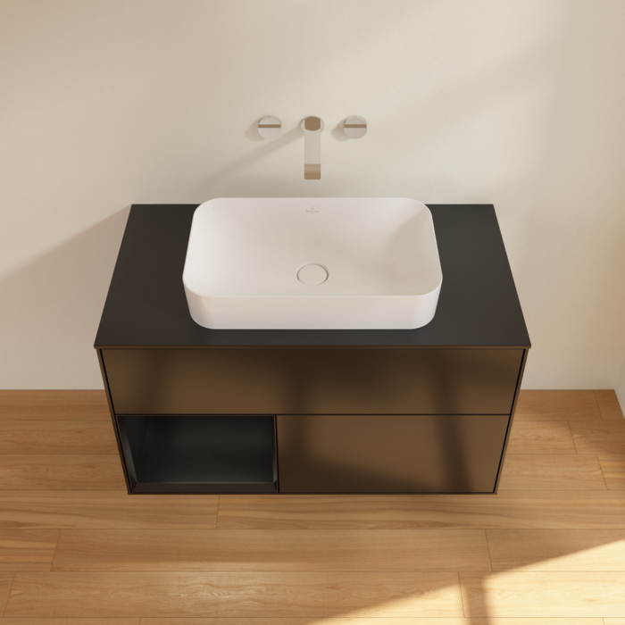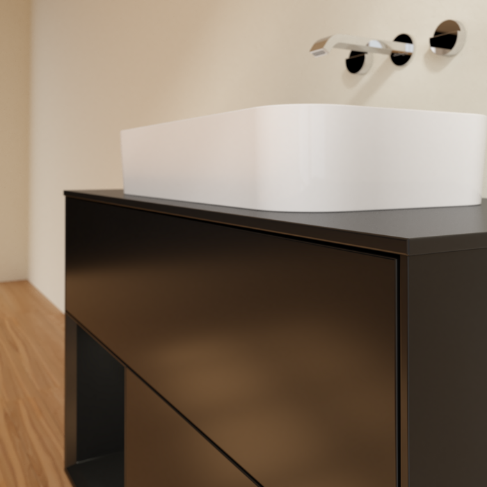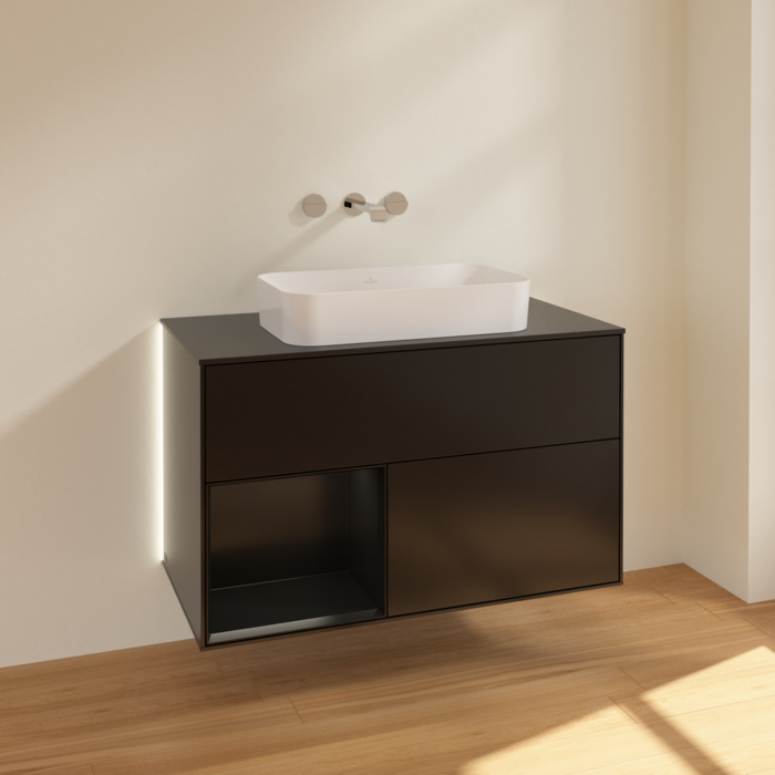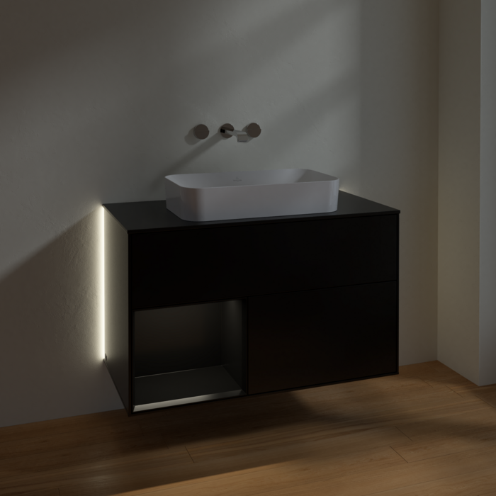 Тумба под раковину Villeroy & Boch Finion 100х50,1 см с подсветкой МДФ черный матовый лак/стекло черное матовое