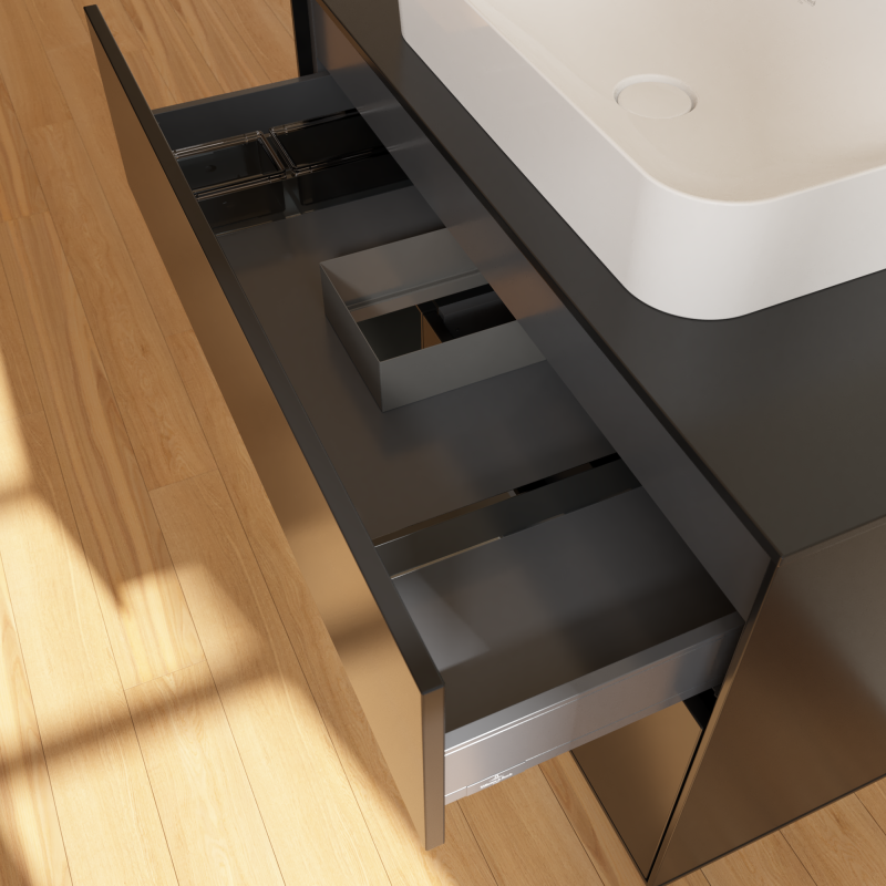 Практичные внутренние перегородки. Продуманные внутренние перегородки в мебели для ванной комнаты Villeroy & Boch позволяют индивидуально поддерживать порядок в ванной комнате. Различные элементы, такие как регулируемые стеклянные перегородки и ящики для аксессуаров различных размеров, обеспечивают порядок и хороший обзор. Благодаря практичным внутренним перегородкам вы сможете с первого взгляда найти часто используемые аксессуары для ванной комнаты.