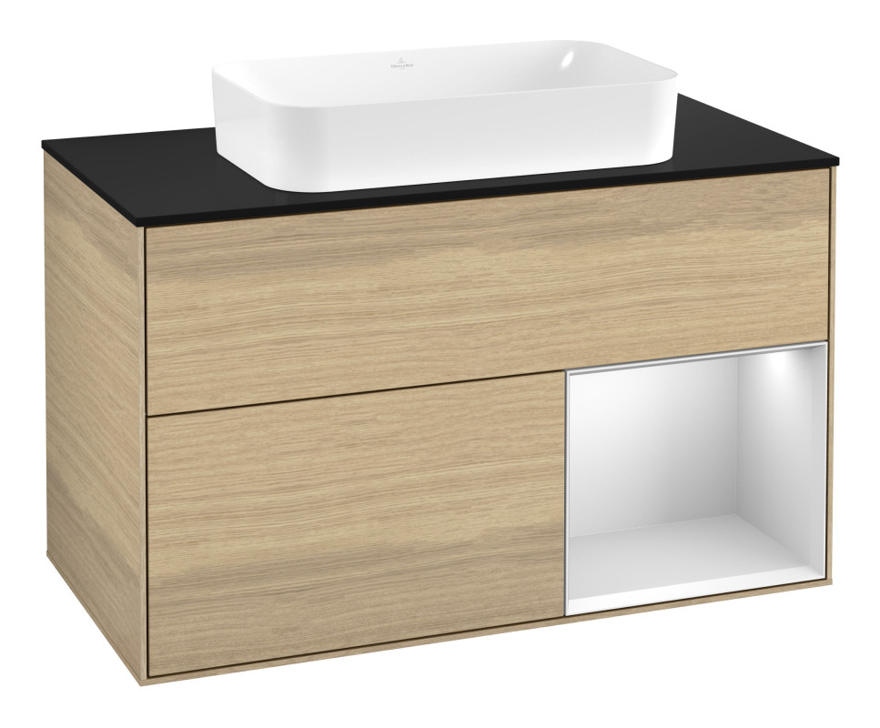 Тумба под раковину Villeroy & Boch Finion 100х50,1 см с подсветкой МДФ шпон дуба/стекло черное матовое F662MTPC