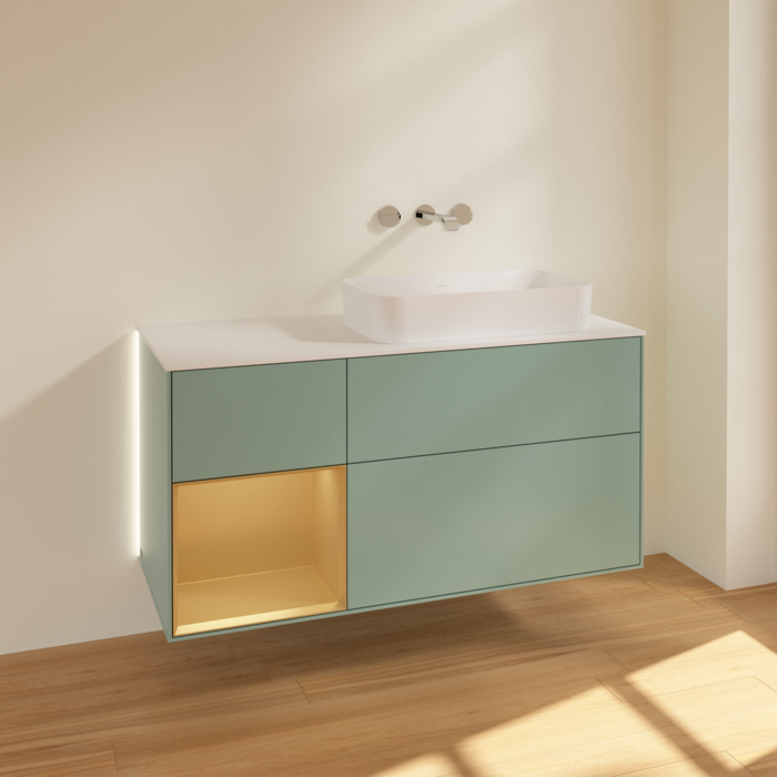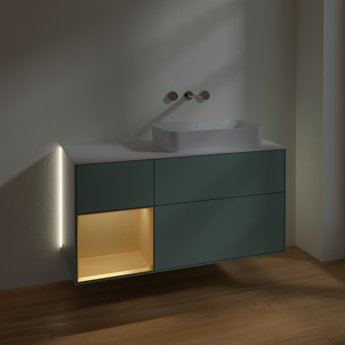 Тумба под раковину Villeroy & Boch Finion 120х50,1 см с подсветкой МДФ оливковый матовый лак/стекло белое матовое G681HFGM